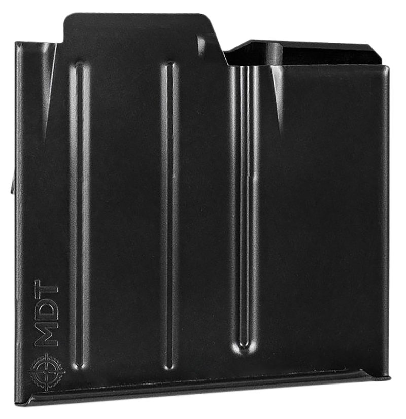This MDT rifle magazine holds 5 rounds and is chambered for .30-06 Springfield and 6.5x55 Swedish Mauser cartridges. Constructed from black nitride steel for enhanced corrosion resistance and durability. Dimensions measure 11.6" L x 11.1" W x 1.4" H.