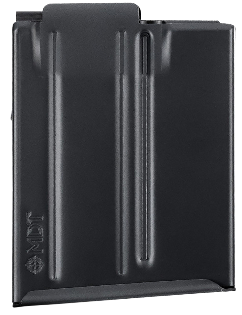 MDT metal magazine chambered in 6mm ARC with 12-round capacity. Fits short-action AICS pattern rifle chassis systems. Black finish with dimensions of 10.1" length, 9.1" width, and 1.3" height.