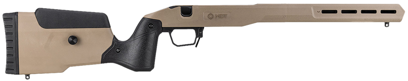 MDT Field Stock is a polymer rifle stock designed for Tikka T3 Short Action rifles. This FDE-colored chassis provides a lightweight alternative to traditional wooden stocks with a comfortable ergonomic design.