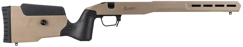 MDT Field Stock is a polymer rifle stock designed for Savage short action rifles. This FDE (Flat Dark Earth) colored stock measures 35.7" in length and provides a durable polymer construction for field use. Installation is direct fit to compatible Savage short action platforms.