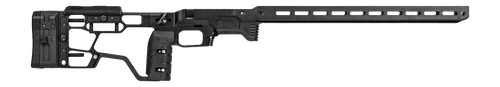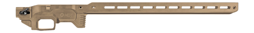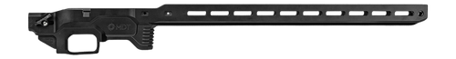 The MDT Elite Bag Rider is an aluminum accessory designed to work with MDT chassis systems and precision rifle setups. This flat black anodized component measures 7.8" x 3.7" x 0.8" and provides a stable mounting solution for bag-rest shooting applications. The aluminum construction offers durability while maintaining a lightweight profile for field use.