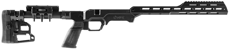 MDT The Tactical LSS Gen3 is a precision rifle chassis designed for Remington 700 long action platforms. This chassis features a modern tactical design with dimensions of 36.0" length, 10.8" width, and 3.2" height, providing a stable platform for long-range shooting and tactical applications. Installation is direct-fit to Remington 700 long action receivers without gunsmithing.