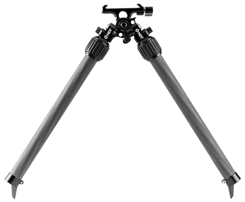 The MDT Mountain Bipod is a lightweight carbon fiber and aluminum bipod with a vertical adjustment range of 2.70" to 15.80", making it suitable for shooting from various positions and terrain. Weighing just 5.60 oz, it features a compact design ideal for mountain hunting and field shooting applications. The two-leg design provides stable support while maintaining minimal weight penalty for mobile shooters.