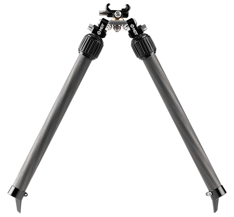 The MDT Backcountry Bipod features carbon fiber legs with aluminum and titanium construction, offering lightweight stability for precision shooting. It adjusts from 7.50" to 14.30" in height and mounts to Picatinny rails. Weighing just 5 oz, this bipod is designed for hunters and shooters seeking a durable, portable shooting rest.