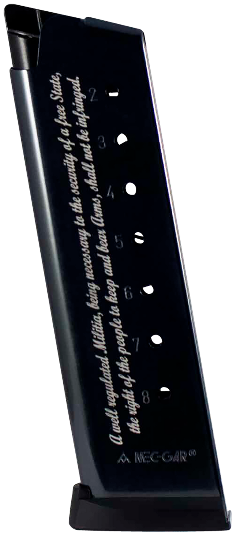 Mec-Gar 1911 Government .45 ACP 8rd Magazine, Blued with 2nd Amendment Engraving - MGCG45082A