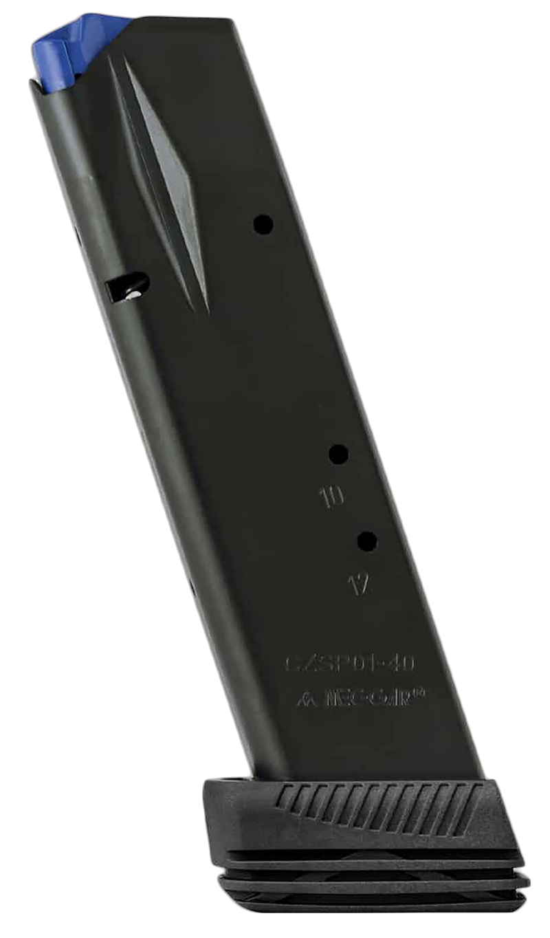 Mec-Gar 14-round magazine chambered in 40 S&W with anti-friction finish for smooth feeding and reliable operation. Designed to fit CZ Shadow, Shadow 2, 85B, 75B, and SP-01 pistols. Dimensions: 9.2" length x 3.2" width x 1.4" height.