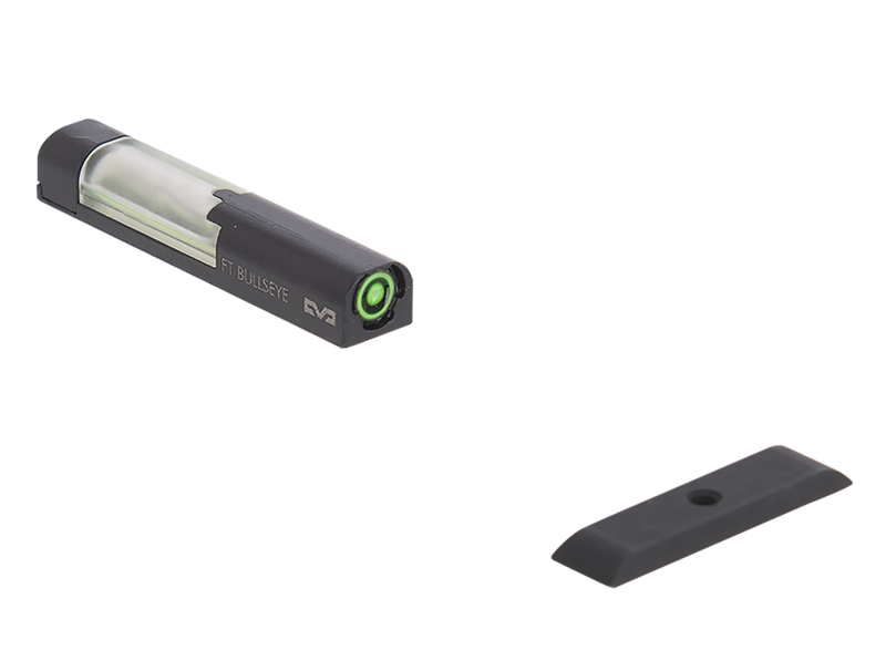 The Meprolight FT Bullseye is a low-profile fiber optic and tritium front sight designed for all Glock models with a post mount. The combination of fiber optic and tritium illumination provides fast target acquisition and accurate shooting in all lighting conditions without requiring batteries. The sight features a green illuminated dot and circle bullseye reticle pattern for intuitive aiming.