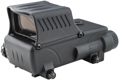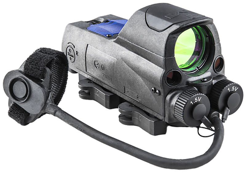The Meprolight MOR Pro is a 1x30mm red dot sight with a 2.2 MOA dot/bullseye reticle and integrated green and IR laser. It features unlimited eye relief and field of view with weather-resistant construction, making it suitable for tactical and hunting applications.