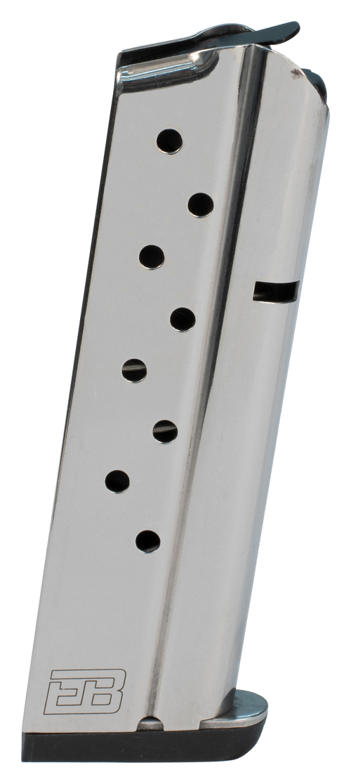 Metalform replacement magazine for 1911 Government pattern pistols chambered in 38 Super. This stainless steel magazine has a 9-round capacity and is designed for reliable feeding and durability.