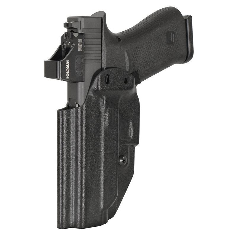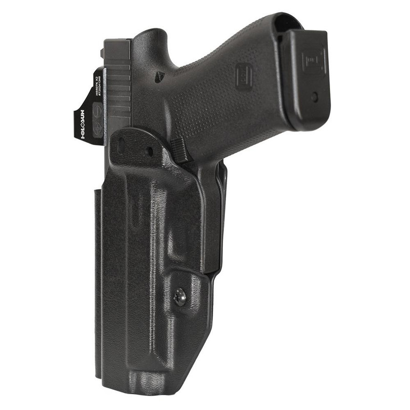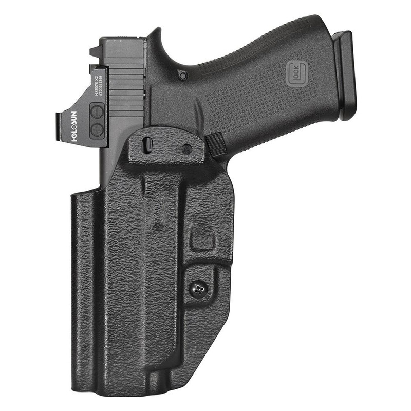 This Mission First Tactical IWB/AIWB holster is designed for the Glock 48 and features ambidextrous draw capability for both right and left-hand positioning. The holster supports both inside-the-waistband (IWB) appendix carry and outside-the-waistband (OWB) configurations with adjustable retention and an audible click for secure re-holstering. Each holster is handmade to precise tolerances using advanced materials for all-day comfortable concealed carry.