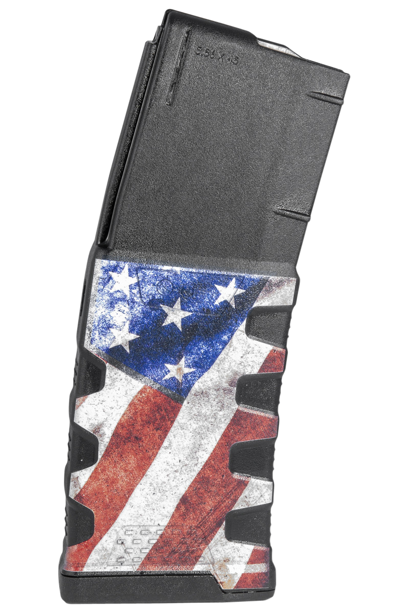 Mission First Tactical Extreme Duty 5.56 NATO 30rd Rifle Magazine, Black with American Flag - EXDPM556AFM1