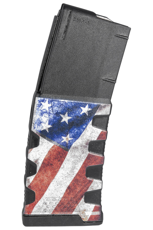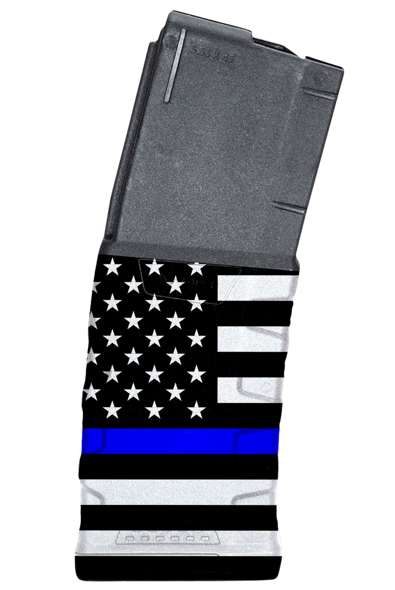 Mission First Tactical Extreme Duty 5.56 NATO 30rd Rifle Magazine, Black with Blue Line Flag - EXDPM556AMB1