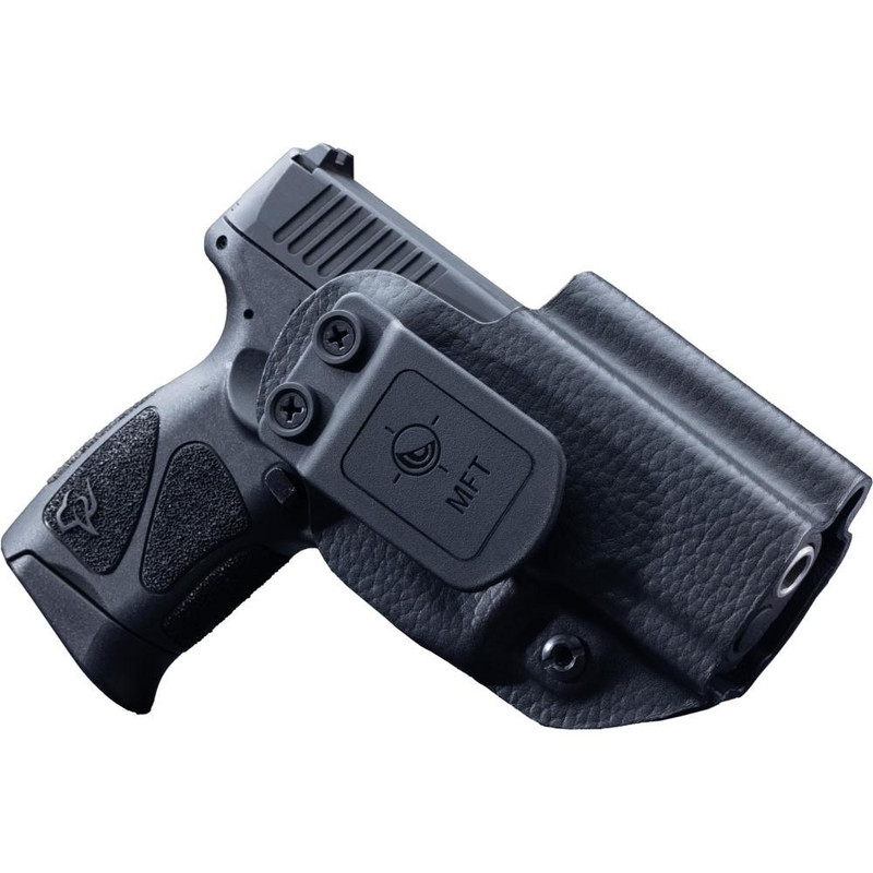 This hybrid holster combines Kydex-style retention and tolerances with genuine American full grain leather for comfort and durability. It is ambidextrous and versatile for appendix IWB, strong side IWB, or OWB carry positions. Designed for Taurus PT111, G2, G2C, G2S, and G3c pistols with no break-in time required.
