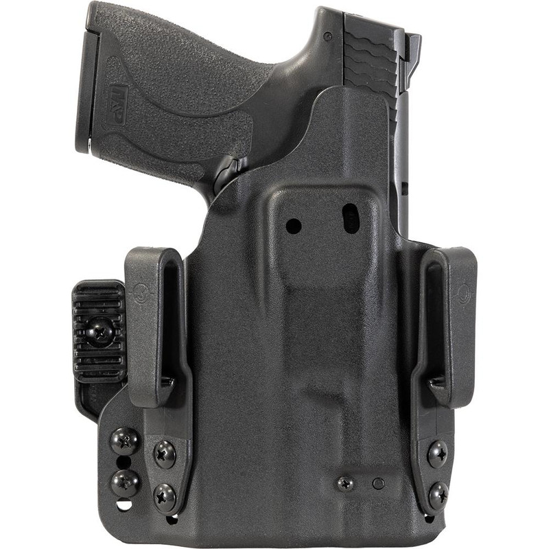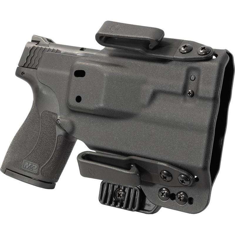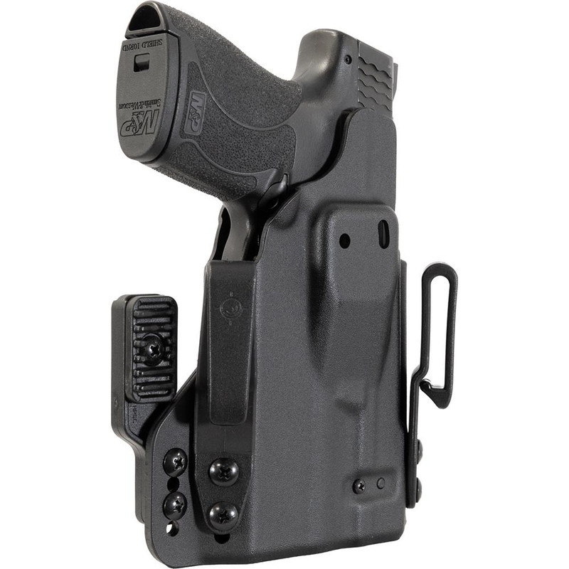 Inside the waistband holster compatible with S&W Shield 1.0/2.0 and Plus models equipped with TLR-6/TLR-6 HL/TLR-6 HL G lights. Features an in-line magnetic retention system (ILMRS) with 11# retention and is convertible between IWB and OWB carry positions in ambidextrous configurations. Designed for everyday carry with adjustable retention and comfort-focused engineering.