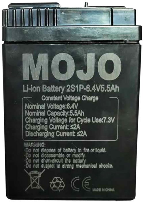 This is a quick charger designed specifically for Mojo Elite Series King Mallard 6-volt lithium-ion batteries. The charger features overcharge protection, trickle charging to maintain battery status, and an LED indicator light. It is not compatible with lead acid batteries.