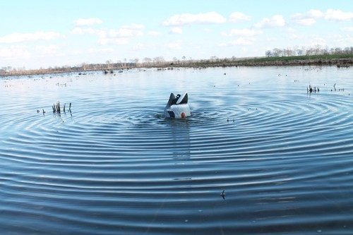 This Mojo Outdoors mallard drake decoy features motorized rippling water action with variable speed settings to create realistic movement and attract waterfowl. Constructed from durable plastic with multi-color finish, it measures 8.0" L x 6.1" W x 5.2" H and operates on AA batteries. Ideal for duck hunting setups requiring motion-activated decoys.