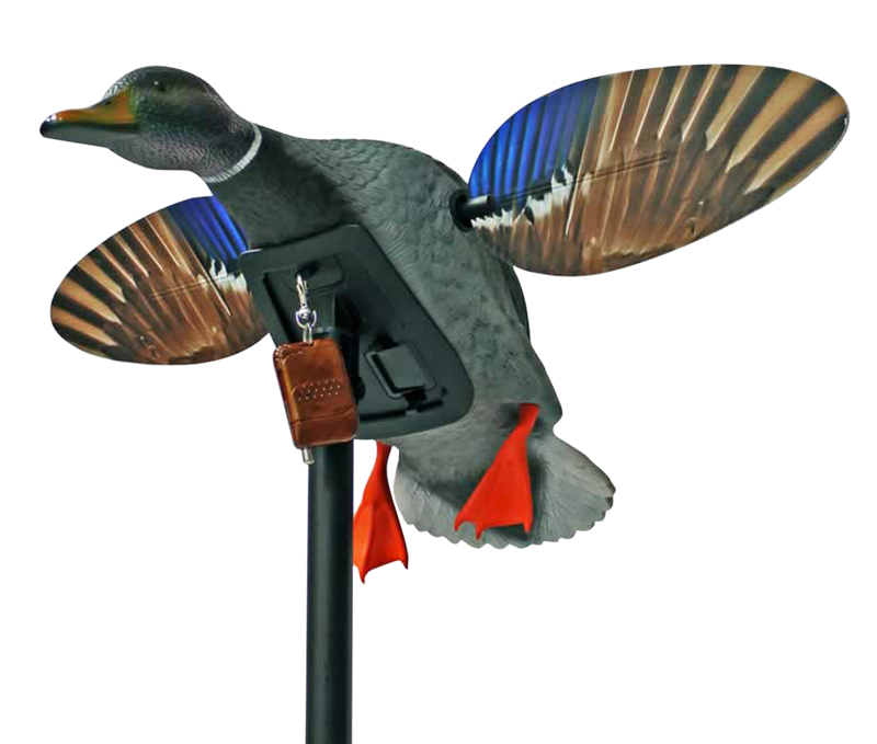 This Elite Series Mini Drake Mallard decoy is a compact plastic waterfowl decoy designed for duck hunting applications. It features remote-controlled motion capability, measuring 19.8" in length with realistic multi-color mallard coloring. The decoy operates on AA batteries and is ideal for hunters using spread tactics to attract mallards.