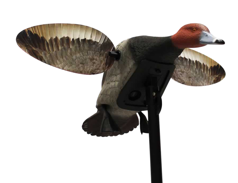 This motorized duck decoy features realistic motion to attract diving ducks, particularly redheads. The plastic construction measures 19.7" x 8.2" x 7.5" and operates on AA batteries with remote control compatibility for convenient operation in the field.