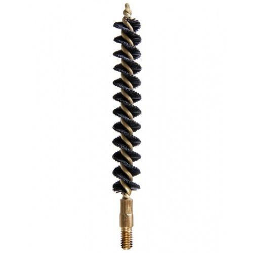 Heavy-duty nylon bristle cleaning brush designed for rifle maintenance with a solid brass core and stiff bristles for effective cleaning with minimal effort. Features standard 8x32 thread compatibility and is constructed to withstand demanding use. Suitable for 8mm, .325, and .338 caliber rifles.