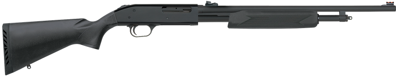 The Mossberg 500 Bantam Slugster is a pump-action shotgun chambered in .410 bore with a 20" barrel and 5+1 capacity. Designed for smaller shooters, it features a reduced grip and forend for easier reach, along with adjustable rifle sights and a cylinder bore choke. This 6 lb shotgun has a matte blue finish with a synthetic stock and is drilled and tapped for optics.