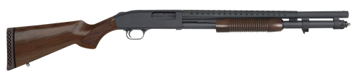 The Mossberg 590 Nightstick is a compact 20 gauge pump-action shotgun with a 14.375" heavy wall barrel and 5+1 capacity, chambered in 3". Featuring a walnut Raptor grip, blued finish, tang safety, and fixed bead sight, this TALO exclusive edition is designed for close-quarters handling. Overall length of 26.5" keeps it maneuverable while maintaining practical capacity.