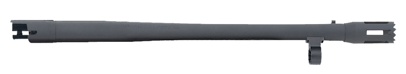 Replacement barrel for Mossberg 500 and Maverick 88 6-shot shotguns chambered in 12 gauge with an 18.5" cylinder bore barrel. Features a breacher crown, bead front sight, and matte blued finish for a security or tactical configuration. Direct bolt-on installation compatible with Mossberg 500 and Maverick 88 models.