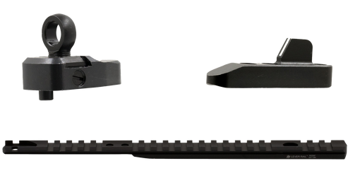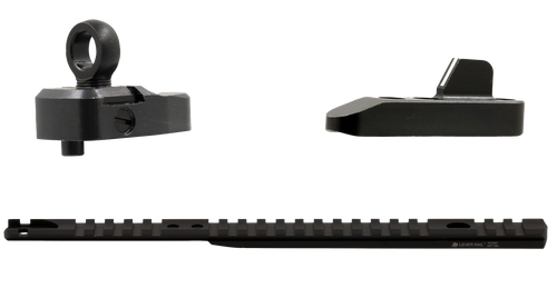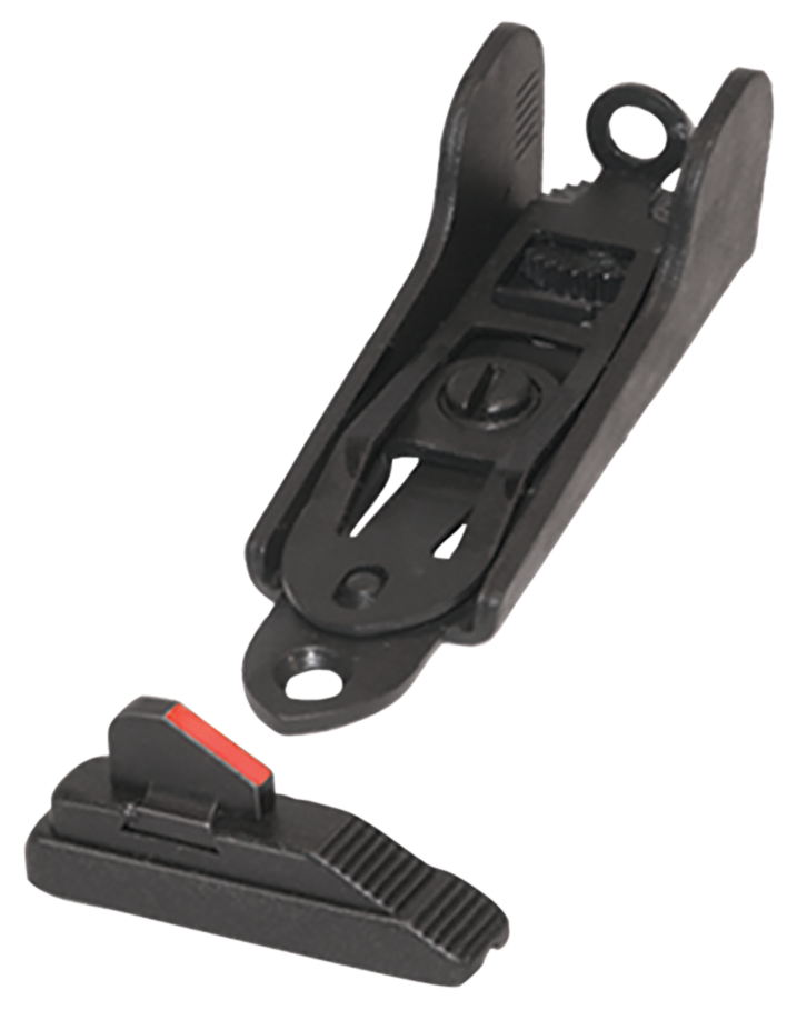 This fiber optic sight kit is designed for Mossberg 500/590 shotguns and features both front and rear fiber optic elements in a matte black finish. The sight set includes adjustable windage and elevation for enhanced accuracy, with a black/red fiber optic front blade and steel construction for durability.