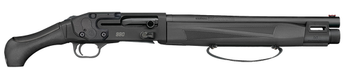 The Mossberg 990 Aftershock is a semi-automatic shotgun chambered in 12 Gauge with a 3" chamber and 14.75" matte blued barrel. It features a 5+1 capacity, fiber optic front sight, M-LOK forend with strap, ambidextrous controls, and black synthetic Aftershock pistol grip designed to minimize felt recoil. Weighing 6.1 lbs with a 27.13" overall length, it delivers a compact, maneuverable platform with gas-piston operation.