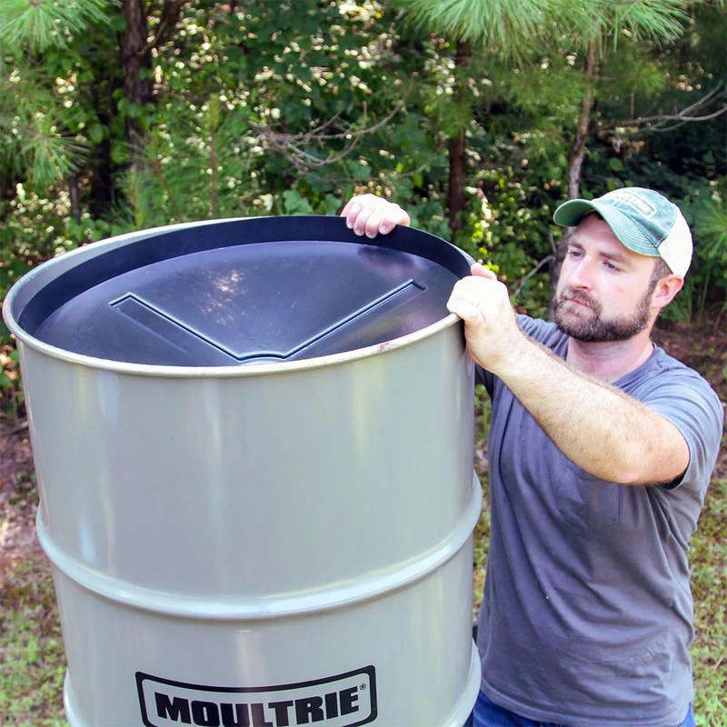 This durable plastic internal funnel prevents feed from pooling on the bottom of 55-gallon barrels, ensuring efficient consumption without waste. It eliminates the need to manually scrape down the inside of hoppers and helps dispense all feed without loss. Compatible with Moultrie 55-gallon feeder systems.