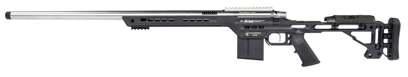 MasterPiece Arms PMR is a 6.5 PRC bolt-action rifle featuring a 26" 416 stainless steel barrel with a 10+1 capacity and TriggerTech trigger. Built on a 6061 aluminum billet competition chassis with adjustable cheek stock and H-Series black Cerakote finish, the rifle is drilled and tapped for optics and weighs approximately 11.5-13.25 lbs depending on configuration.
