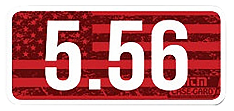 Polymer scratch-resistant coated adhesive labels designed for organizing and identifying ammunition by caliber. Each label measures 2.25" x 1.08" and is sold as a pack of 8 individual 5.56 caliber stickers. Ideal for ammunition storage boxes and containers.