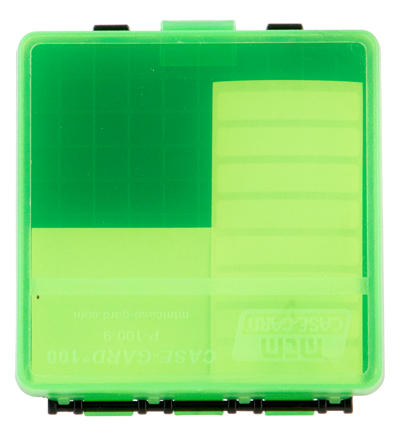 MTM Case-Gard P-100 Multi-Caliber Handgun Ammo Box 100 Round Clear Green Polypropylene - P100916T