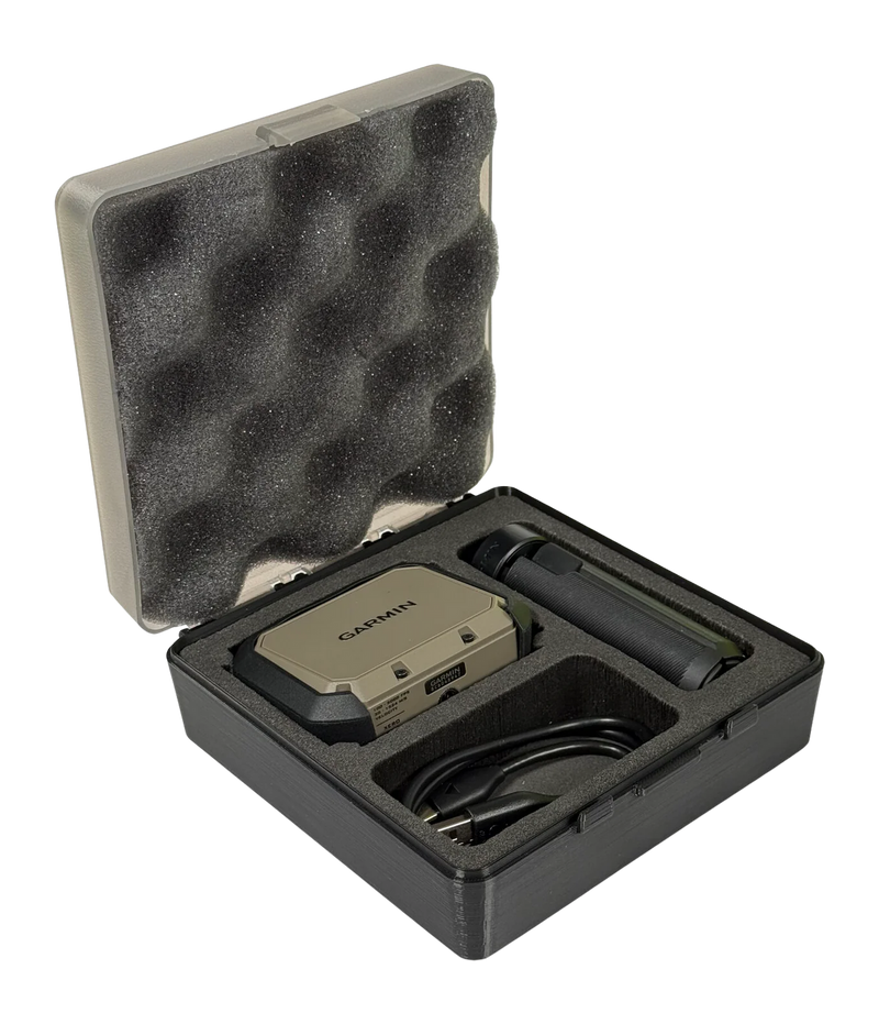 Hard-shell protective case specifically designed to fit and protect the Garmin Xero chronograph and its accessories. Features custom-cut foam padding that secures the chronograph during transport and storage, with a clear lid for quick content identification without opening the case.