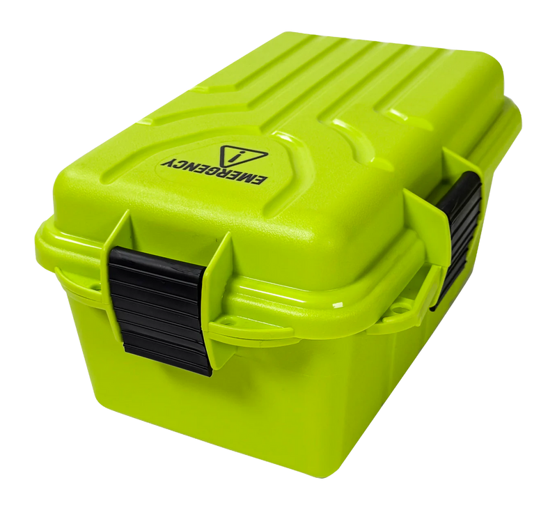 The MTM Emergency Box 2 is a water-resistant storage container designed for organizing and protecting emergency essentials. Features an O-ring seal to lock out moisture, padlock tabs on each latch, and high-impact polypropylene construction for durability. The bright yellow-green color provides fast visibility in emergency situations.