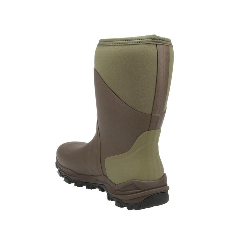 These 13-inch neoprene rubber boots feature 5mm neoprene construction for 100% waterproof protection in wet conditions. Rated for temperatures from 0°F to 70°F, they deliver warmth retention and flexibility for extended outdoor use. Available in size 10D with a clay brown color.