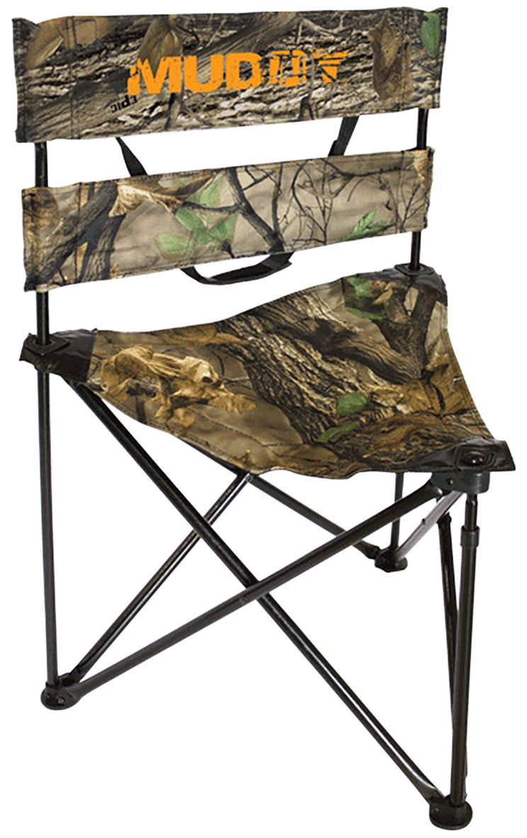 The Muddy Folding Tripod Ground Seat is a portable seating solution designed for hunters and outdoor enthusiasts. Features a sturdy tripod design with a 250 lb weight rating and folds for easy transport. Available in Epic Camo finish with dimensions of 32.0" L x 12.1" W x 6.3" H when set up.