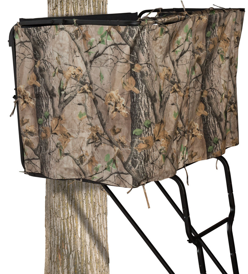 The Muddy Deluxe Universal Blind Kit is a weather-resistant concealment system designed to fit most treestands and ground blinds. Measuring 10.6" long by 8.6" wide by 2.3" high, this camo-patterned kit provides all-season coverage for hunting applications. The universal design allows for flexible mounting on various stand types.