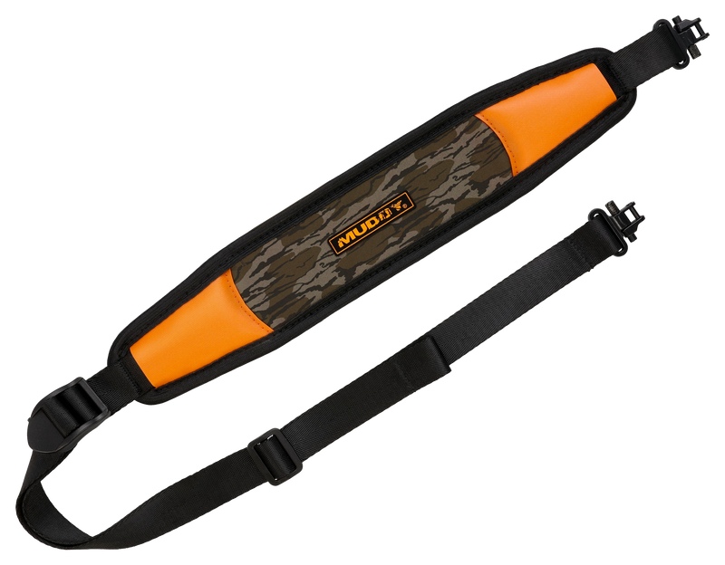 The Muddy Trail Blazer is a lightweight, adjustable rifle/shotgun sling constructed from comfortable neoprene with strong rubber reinforcement points and non-slip backing. It features integrated quick-detach swivels and is designed to flex with firearm movement while remaining securely positioned on the shoulder.