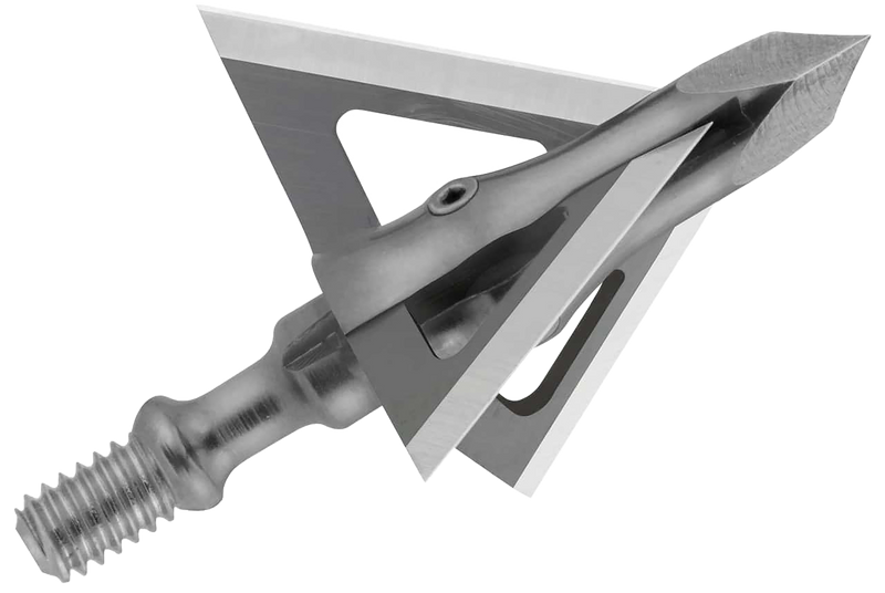 The Muzzy Trocar is a 3-blade broadhead featuring a solid stainless steel ferrule with a right offset blade design for consistent flight and accuracy. The trocar tip is engineered for bone-breaking penetration with a compact 1 3/16" cutting diameter, delivering excellent entry and exit holes for increased blood trails.