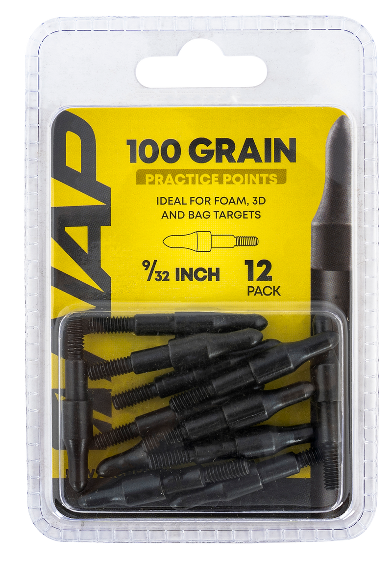 NAP 3D Practice Points are fixed field tip broadheads designed for target and 3D archery practice. Each 12-pack features 100 grain steel tips in black with a 3.2" width. These practice points are ideal for shooters who want to develop accuracy and consistency without the expense of hunting-grade broadheads.