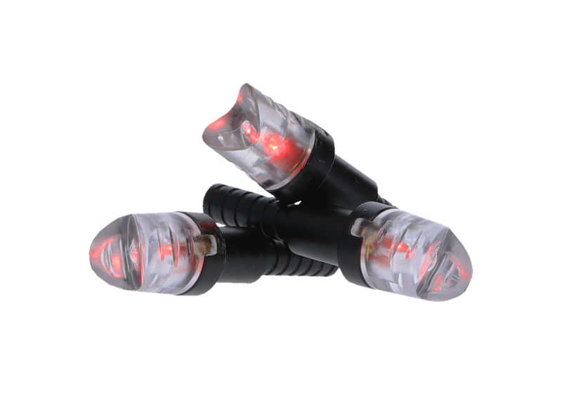 NAP Thunderglo Illuminated Nocks feature red polycarbonate construction with aluminum shafts, designed to enhance arrow visibility during flight and recovery. This 6-pack of illuminated nocks is compatible with standard arrow shafts and provides reliable performance for both hunting and target shooting applications.