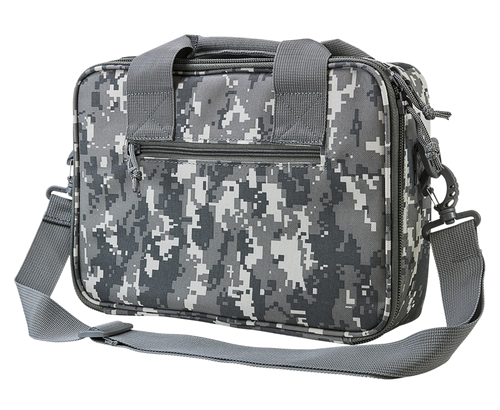 This NcStar VISM double pistol range bag is designed to safely transport and organize two handguns with dedicated magazine pouches. Features heavy-duty lockable zippers for compliance, padded carry handle, adjustable shoulder strap, and measures 13" W x 10" H x 3.25" D.