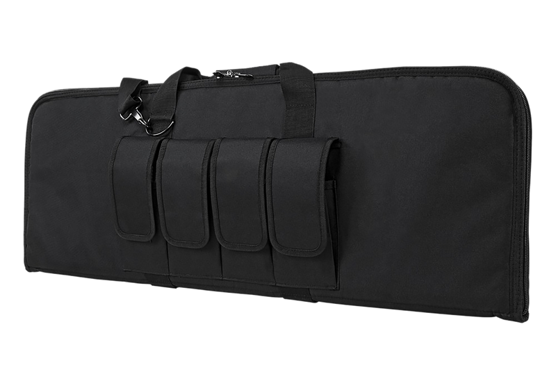 This NcSTAR VISM carbine case is constructed from durable PVC nylon material and measures 36" x 13" exterior dimensions to accommodate carbine-length firearms. Features include lockable heavy-duty zippers, multiple pockets for storage, and a padded carry handle for convenient transport.