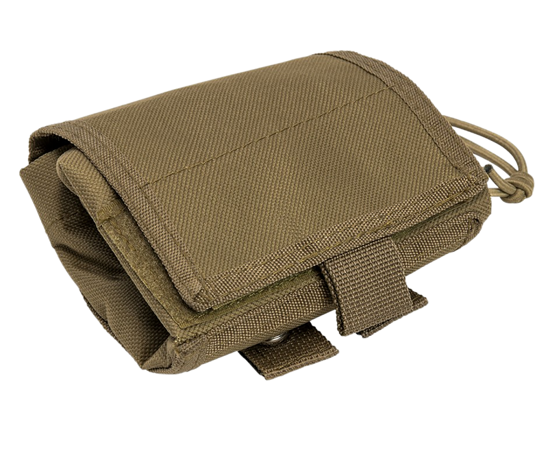 The NcStar VISM Folding Dump Pouch is a tan canvas ammo carrier designed to organize and store ammunition during range sessions or tactical use. This pouch features a folding design with dimensions of 10.9" x 5.8" x 2.6" and is constructed from durable textured canvas material for reliable field performance.