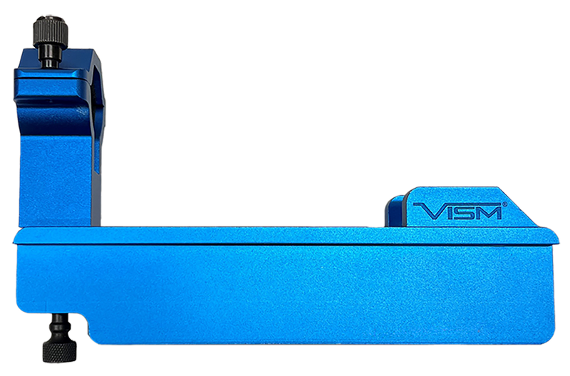 This blue anodized aluminum vice block is designed to securely hold AR-15 and AR-10 lower receivers during gunsmithing work. The block measures 8.4" in length with a 5.5" width and 2.8" height, providing stable support for precision work. It is an essential tool for armorers and gunsmiths performing assembly, disassembly, and maintenance on AR-platform firearms.