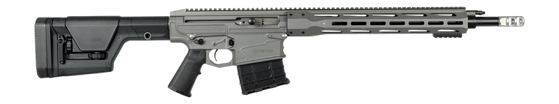 Semi-automatic rifle chambered in 300 Winchester Magnum with an 18" Bartlein barrel and 14-round capacity. Features Cobalt Cerakote finish, Magpul PRS buttstock, Geissele SSA-E trigger, NEMO 4-position adjustable gas block, and dual chamber muzzle device. Effective to 1200+ yards for long-range precision and hunting applications.