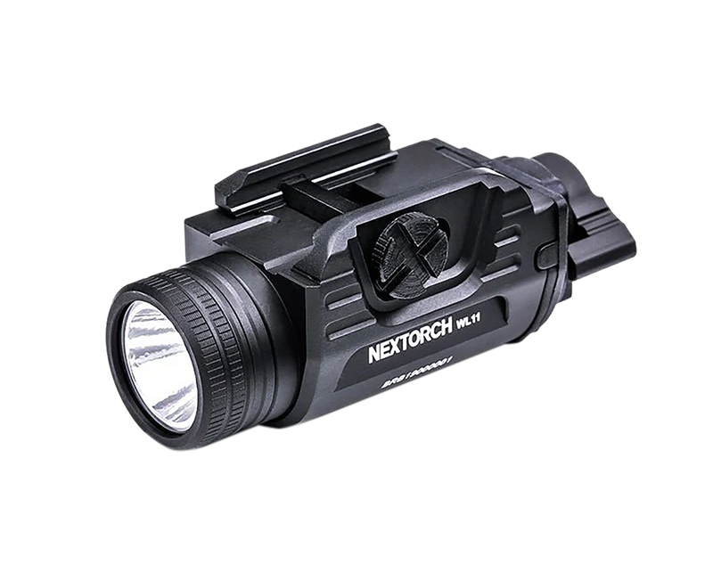 The Nextorch WL11 is a 650-lumen tactical weapon light designed for firearm mounting on rails and picatinny systems. This compact light measures 6.1" in length and 2.8" in width, making it suitable for pistols and rifles. The WL11 provides bright illumination for tactical and self-defense applications.