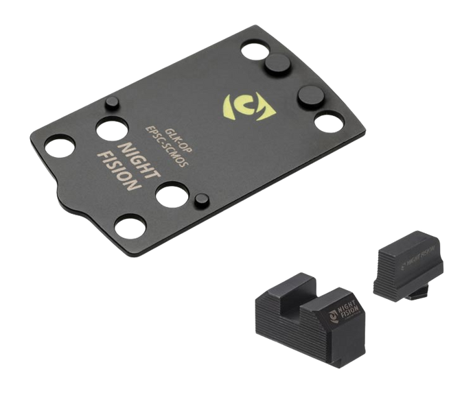 Night Fision Optic Plate + Backup Sight Combo, Yellow Front/Black Rear - GLK-OPBS-ACRO-MOS-YGZX