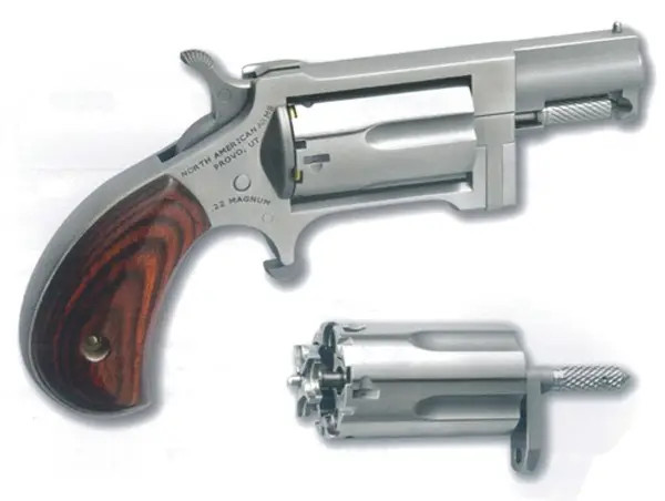 North American Arms Sidewinder chambered in 22 LR/22 Mag with a 1" barrel and stainless steel construction. Features a swing-out cylinder design for convenient loading and unloading. This compact revolver is ideal for concealed carry or backup use.
