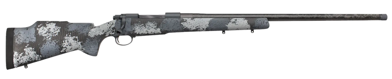 The Nosler M48 Long-Range Carbon is a bolt-action rifle chambered in 33 Nosler with a 26" carbon fiber-wrapped barrel and 3+1 capacity. Features a Timney trigger, two-position safety, and Manners MCS-T Elite Tac stock in Elite Midnight Camo finish. Weighs 7 lbs with sniper gray Cerakote metal finish for reduced weight and improved accuracy.